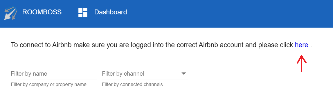 After clicking "here", you will be redirected to the Connect Airbnb to RoomBoss page.