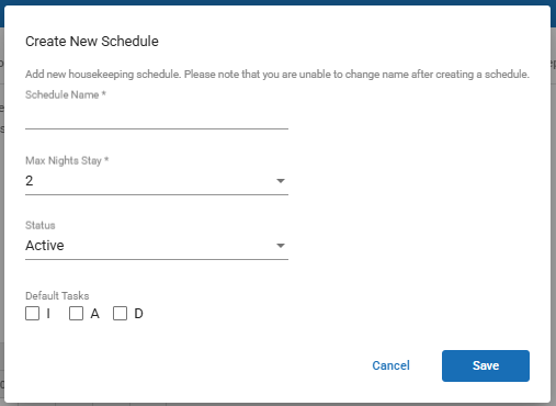 - If no default schedule is set for a room type then the first alphabetically will be used as default.