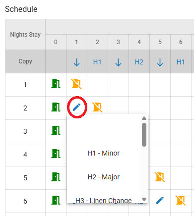 By day of event (Individually) – for example by adding only the first night of a two day booking. Click the editicon for the slot where you want to add a cleaning task, select the cleaning type, and then click the save